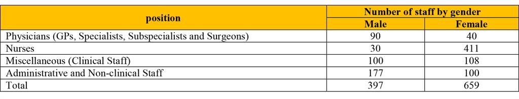 Men's and Women's Internal Medicine Department, Pediatric and Neonatal Department, Gynecological Surgery Department, Cardiology Department and CCUs 1 and 2, Dialysis Department, Operating Room, Infectious Diseases Department, Men's and Women's Psychiatry Department